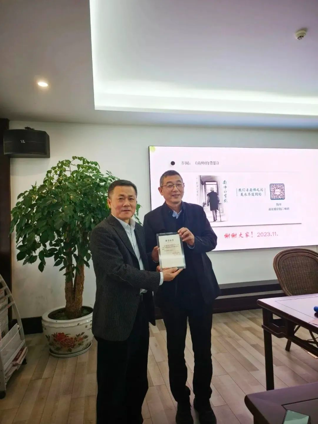 讲座结束后,胡瑞怀副院长为查旭东先生颁发“讲学证书”,本次讲座活动圆满结束。