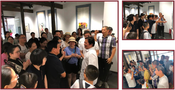 10月2日上午九时许,金松中国人物画研修班师生及友人一行30余人先参观了墨池坊8号春兰草堂,一个朝南小院正厅和左右厢间以老宅新装玻璃相隔的样式,使展厅和会客品茗赏画恰谈功能分开。