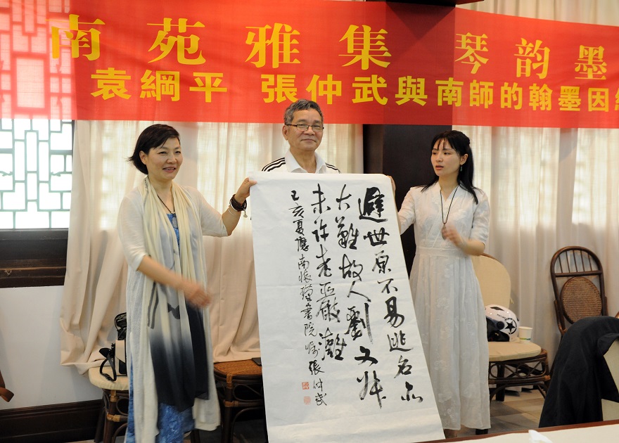 张仲武先生还即席书写当年奉赠南师的五绝诗:“避世原不易,逃名亦大难,故人刘文叔,未许老严滩 ”,赠送给书院。他还表示,将在合适的时候,将自己与南师多年以来的交往中,南师写给他的几份亲笔信件捐赠给书院。