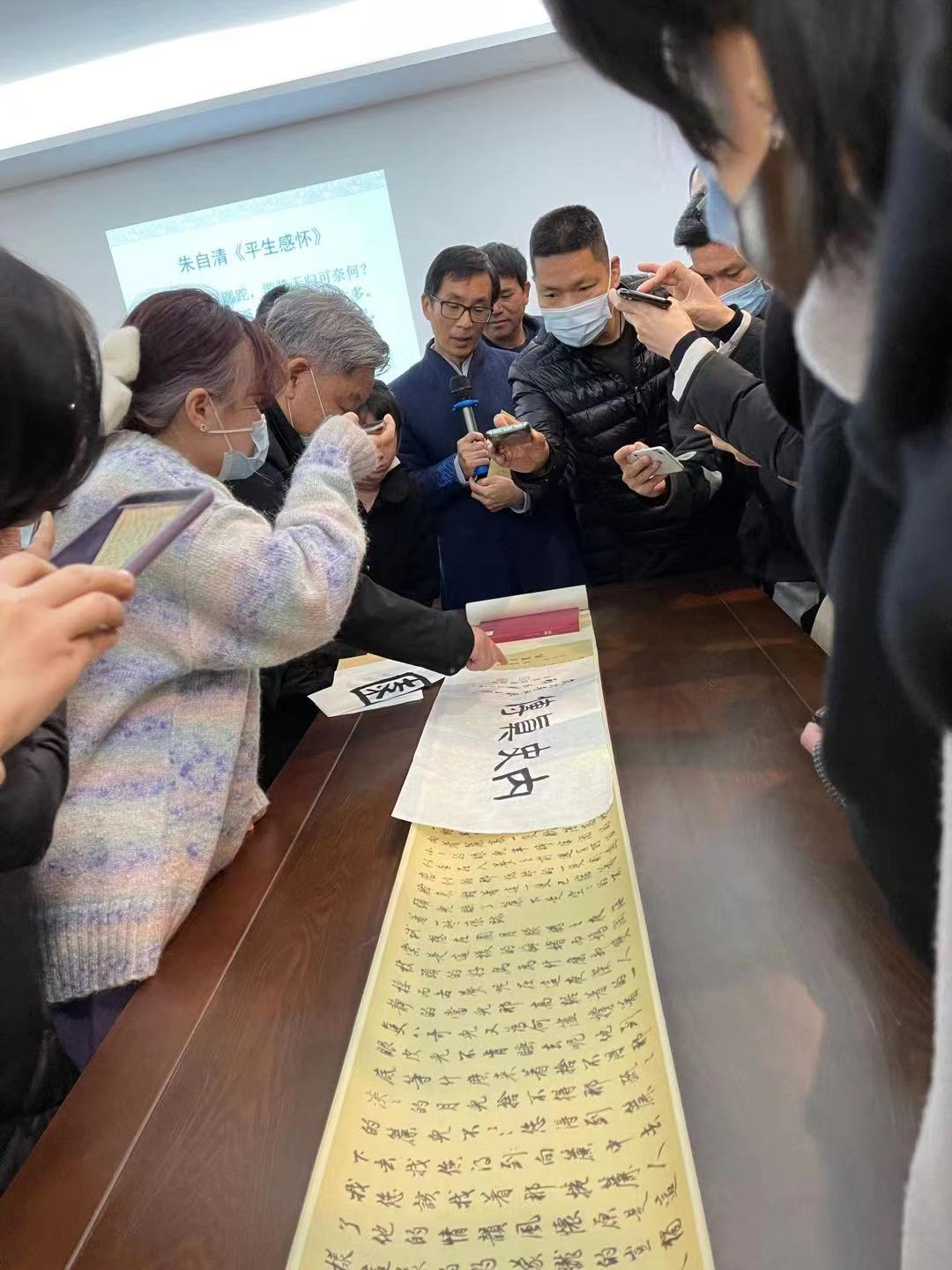 温州大学美术设计学院陈胜武老师声情并茂地讲解了中国现代散文家,诗人学者朱自清先生到浙江省立第十中学(温州中学前身)任教,和马亦钊先生的祖父马孟容、叔祖马公愚成为同事,他们之间的交往成为艺坛佳话。