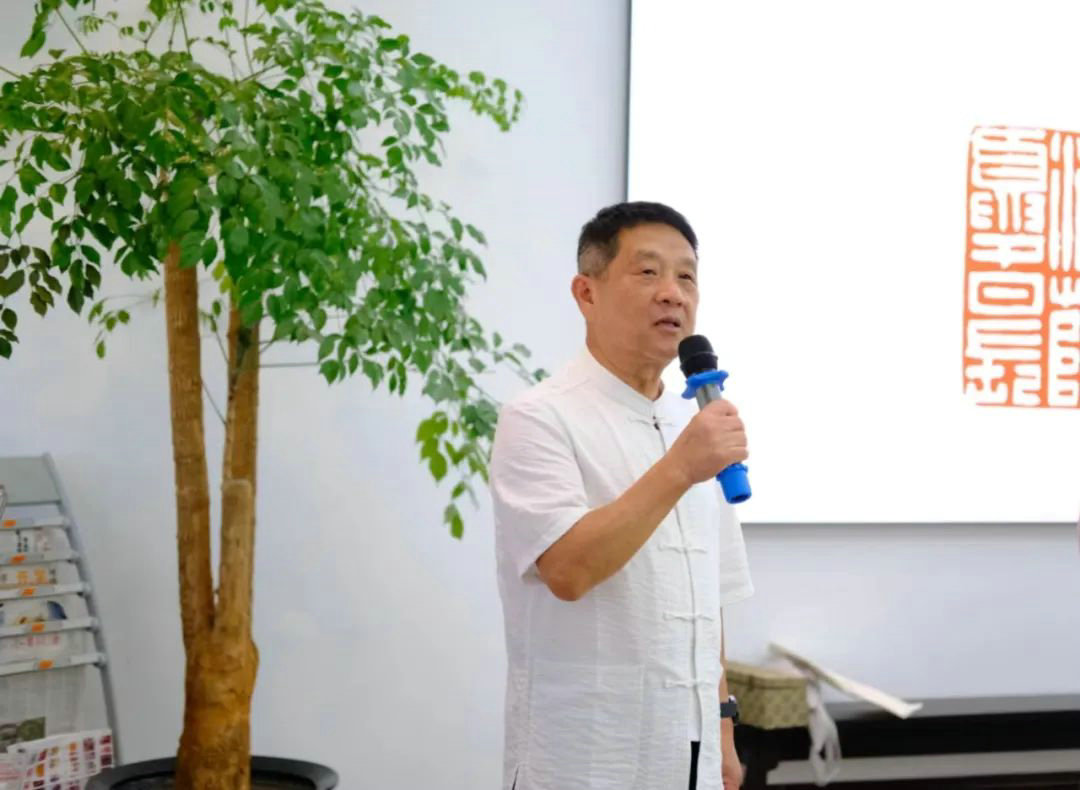 讲完书画内涵,张索老师兴致不减,向大家科普起了书画篆刻的款识。他介绍了款识的由来、种类、构成等内容,也顺便提及了文人的斋号、作品里的仪礼等内容,并展示了大量篆刻、印章图录。
