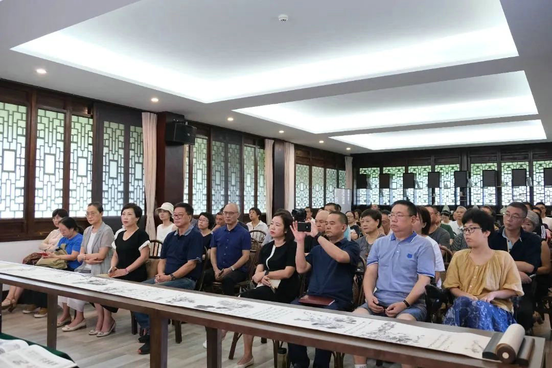 讲座中,张索老师还展出了徐堇侯先生的《玉台清风》水墨花卉长卷精品,吸引了在场所有观众的驻足欣赏,赢得一片赞叹之声。