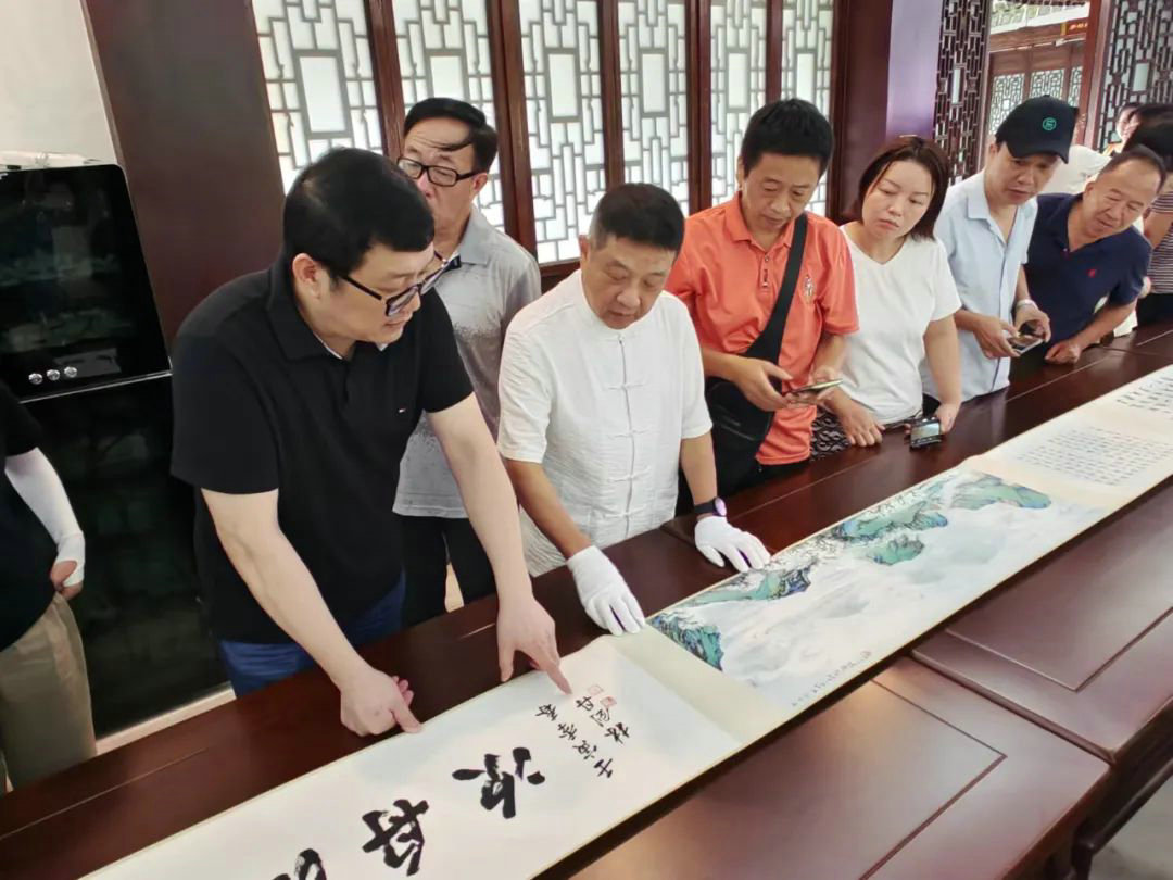 讲座结束后,在吴东院长的提议下,沈老师和在场观众一同欣赏了书院收藏的长卷《瓯江舟次》。