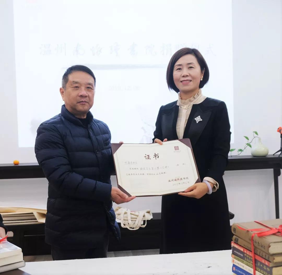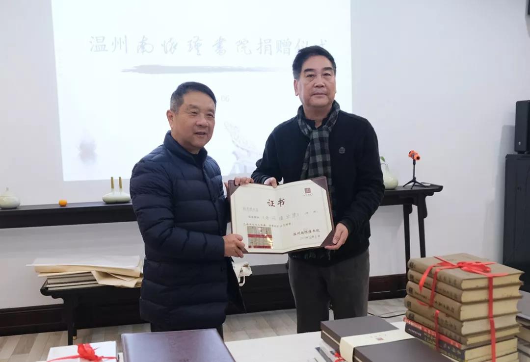 12月6日,温州南怀瑾书院举行仪式,接受一批捐赠书籍,并向捐赠者颁发收藏证书并回赠礼品。
