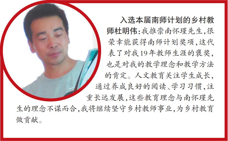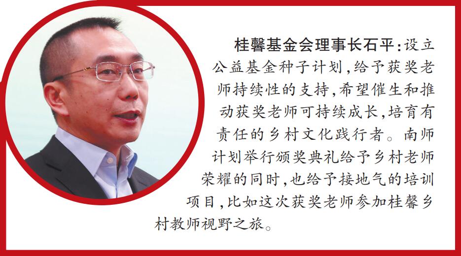 9月21日下午,第二届“桂馨·南怀瑾乡村教师论坛”在温州市人 民大会堂举行。论坛上,第四届“桂馨·南怀瑾乡村教师计划”项目 (简称“南师计划”)获选及入围教师正式揭晓,其中全国15位优秀乡 村教师获选,3位乡村教师入围。当天,第五届南师计划公益项目宣 布正式启动。