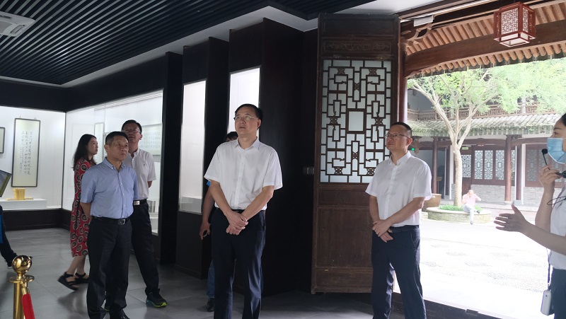 2020年6月21日,生态园管委会主任郑华陪同浙江省委宣传部副部长赵磊一行约10人到生态园开展调研工作。 赵磊一行来到南怀瑾书院,欣赏了南怀瑾先生的书画作品,聆听了墨宝背后的故事,感受了大家的国学思想和家国情怀。赵磊指出,南怀瑾先生思想博大精深,是宝贵文化财富。文化更是发展力,希望生态园以南环瑾书院为基础,深度融合瓯越文化,推动湿地文旅创新发展。