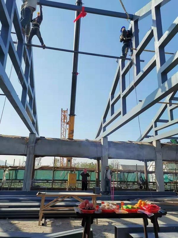 2020年12月2日上午9点38分,南怀瑾书院二期工程三和楼主梁上梁仪式在施工现场举行。仪式开始后,随着书院执行院长吴东一声令下,扎着红色绸带的最后一根主梁徐徐上升,并顺利就位,与人字钢架平稳对接,自此标志着书院二期工程的主体施工顺利完成。书院院务长柯小敏、书院全体工作人员及施工人员等参加此次仪式。