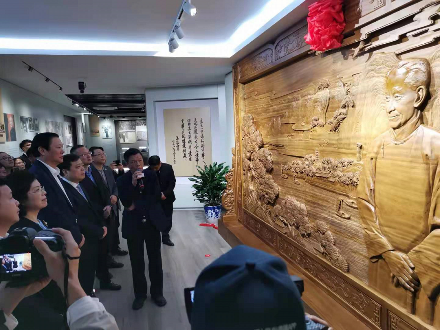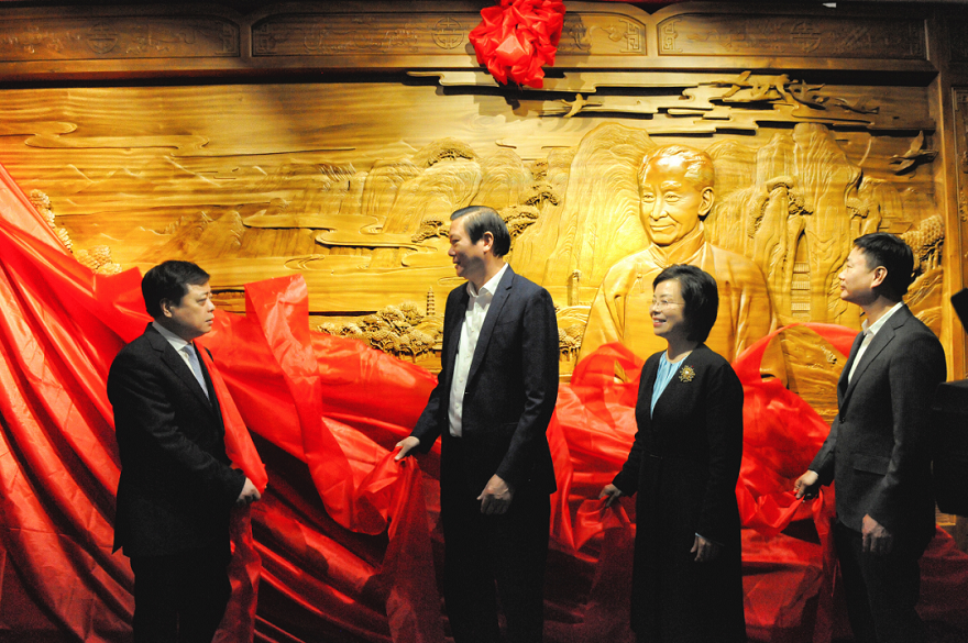 2021年3月17日上午,随着南怀瑾先生像木雕屏上的红绸被缓缓揭开,温州南怀瑾书院南怀瑾生平展正式开展。这也意味着,纪念南怀瑾先生诞辰103周年的系列活动拉开序幕。温州市政协原主席余梅生,温州市委常委、统战部部长施艾珠,全国政协常委、全国工商联副主席、正泰集团董事长南存辉共同为木雕屏揭幕。