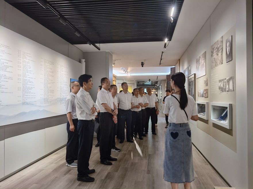 一行人听取展厅介绍,了解国学大师南怀瑾先生的生平事迹,感受南怀瑾先生在修身、做人、处事方面的思想智慧,并对其在文化教育、两岸和平、改革开放方面做出的贡献表示赞赏。
