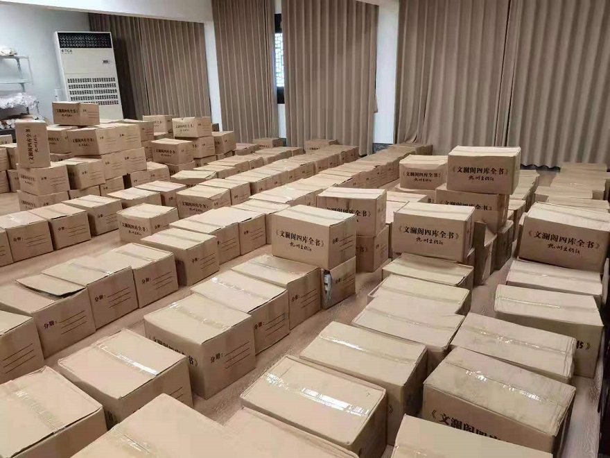 7月29日下午,《文澜阁四库全书》在居庸斋二楼藏经阁上架,共计183箱,1559册。温州南怀瑾书院全体工作人员、温州市图书馆两位同事共同参与完成书籍上架工作。