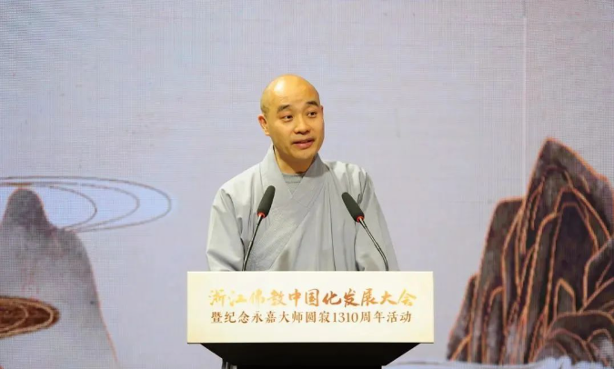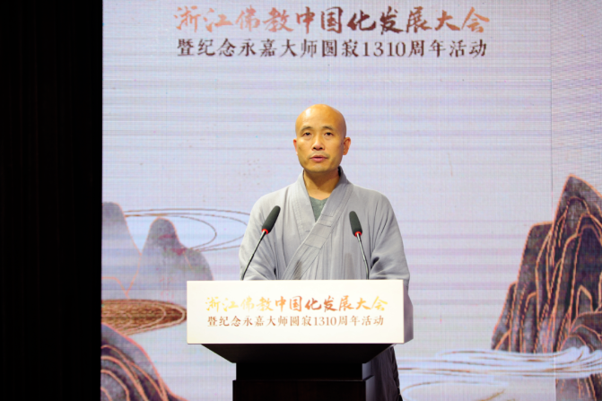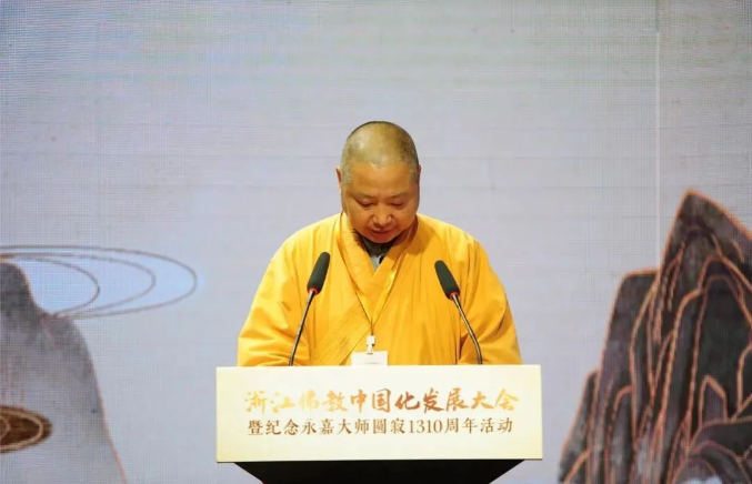 在会上,中国佛教协会驻会副会长宗性大和尚,浙江省佛教协会副会长、天台山国清讲寺方丈允观大和尚,温州市委常委、统战部部长汪驰,浙江省民族宗教事务委员会副主任钟新章先生发表讲话,浙江省社会科学院哲学研究所所长陈永革教授发表主旨演讲。