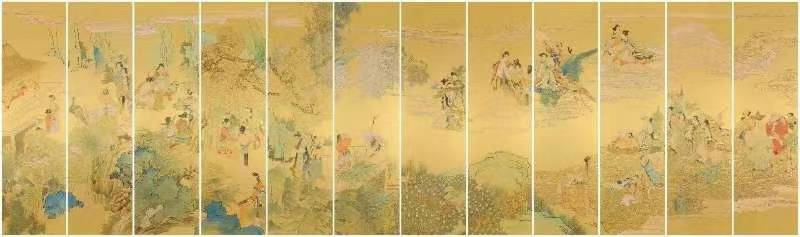 壮哉昆仑方壶图,挂君高堂之素壁。此唐杜甫咏《王宰山水图歌》之句也。挂在高堂的仙山图,正是唐人的立轴山水画。或称中堂,因高度不同有大小之别,将中堂绢纸,直对开则称为琴条、条幅、条屏。条屏又有单屏、对屏、联屏之分。联屏最多可至十二条。如清代任伯年有《群仙祝寿图》,石泠亦有《十二花神图》,每幅可独立欣赏,合为巨幅者,历代皆有其作。日本有画家夫妇作《原子弹灾害图》,为便于携带,也用中式立轴分裱其巨幅。石泠将选择历代立轴名作分析讲解立轴绘画的特征。