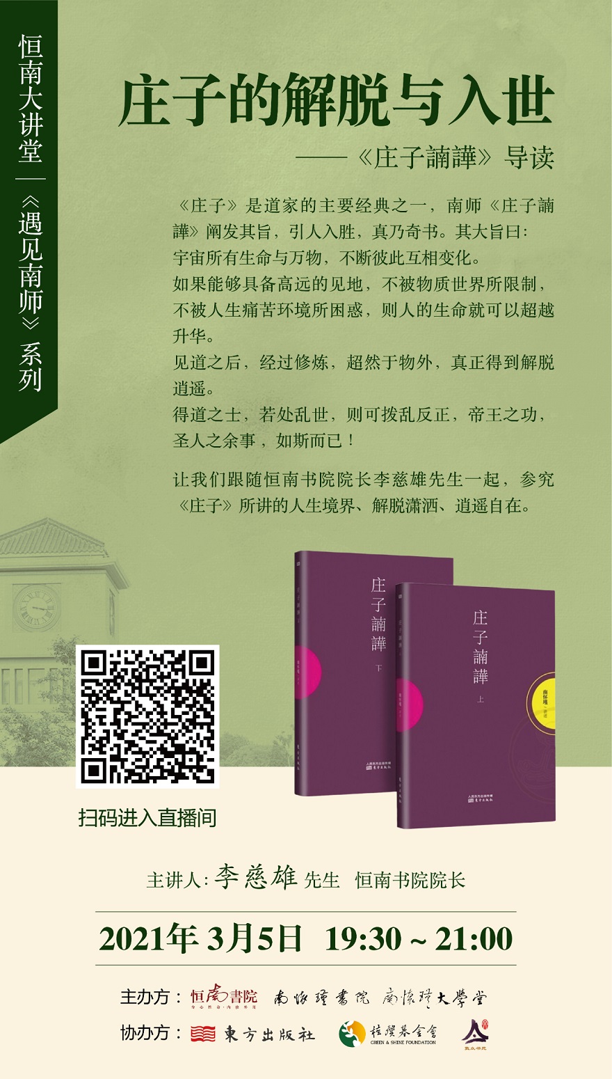 3月5日【直播预告】李慈雄先生:庄子的解脱与入世——《庄子諵譁》导读